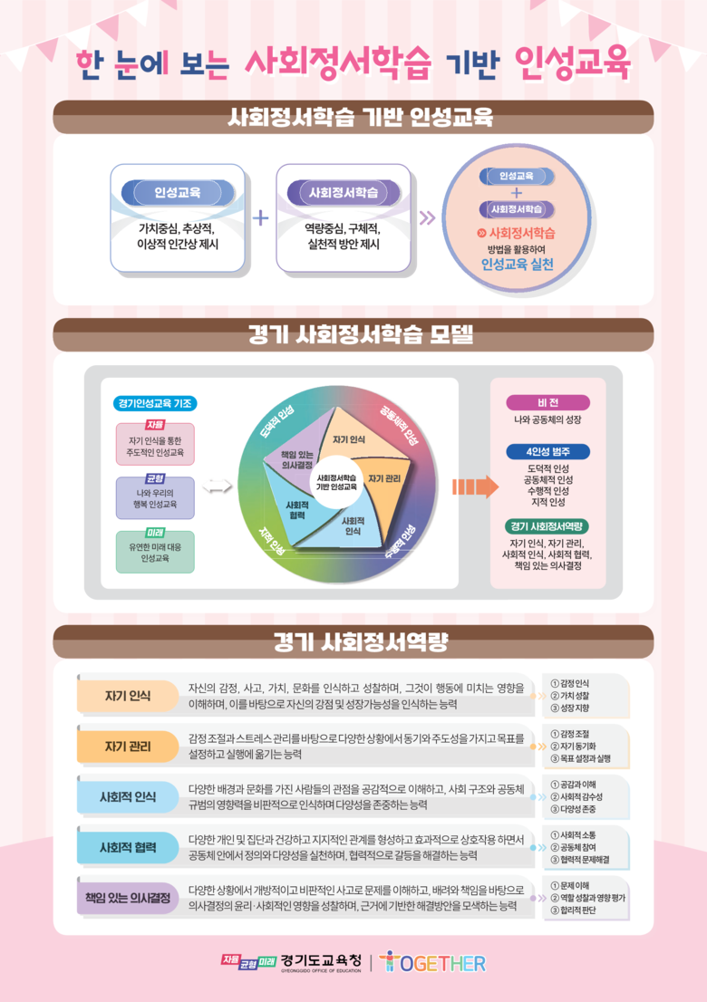 도교육청은 학교-가정-온라인 연계 활용도가 높은 자료 제작 및 보급으로 인성교육의 장을 가정과 사회로까지 확장하도록 힘쓰고 있다. 이를 통해 사회정서학습 기반 인성교육 이해도 제고와 경기인성교육의 도약을 위해 적극 노력할 방침이다.
