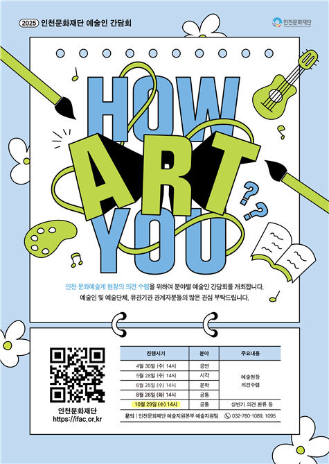 2024년부터 시작된 예술인 간담회 < HOW ART YOU? >는 인천 예술인의 의견을 듣고 이를 사업 운영에 반영하는 선순환 구조를 만들어왔다. 재단은 앞으로도 현장의 목소리가 정책으로 반영될 수 있도록 노력할 계획이다.