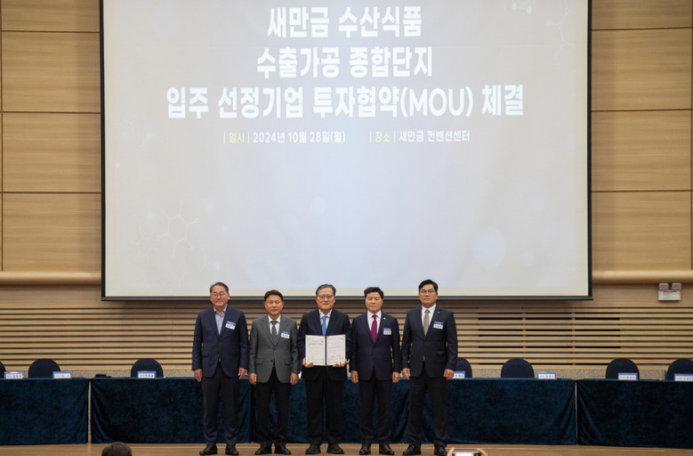 28일 군산 새만금컨벤션센터에서 열린 투자협약식에는 김종훈 전북특별자치도 경제부지사, 강임준 군산시장, 김경안 새만금개발청장, 안재호 한국농어촌공사 새만금산업단지 사업단장과 이효율 풀무원 총괄CEO 를 비롯한 입주기업 관계자들이 참석했다. 새만금 수출식품 수출가공 종합단지에는 풀무원을 포함해 총 12개 수산식품 기업이 입주하게 되며, 이날 각 입주기업들도 전북도, 군산시, 새만금개발청, 한국농어촌공사와 투자협약을 체결했다.