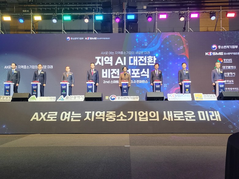 한편, 선포식에는 5개 시도 부단체장*을 비롯해, 한성숙 중소벤처기업부장관, 허성무 국회의원, 강석진 중소벤처기업진흥공단 이사장, 기업 대표 등 200여 명이 참석했다. 경남도가 대표로 ‘지역주도 AI 대전환 사업추진계획’을 발표했으며, 선포식 이후에는 인공지능(AI) 공급·수요기업 간담회, 스마트제조 3.0 콘퍼런스 등 부대행사도 진행됐다.
