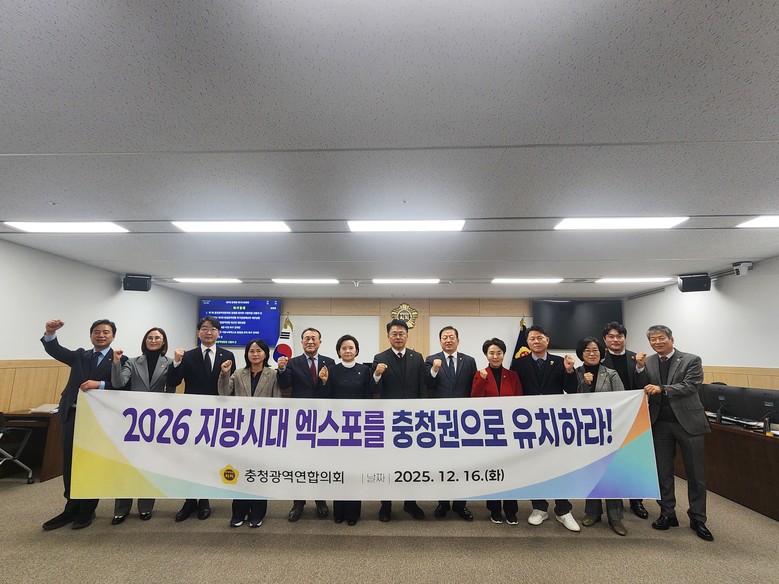 [세종 세계타임즈=이채봉 기자] 충청광역연합의회(의장 노금식)는 12월 16일 열린 제7회 정례회 제1차 본회의에서 이옥규 의원(충청북도 청주시, 국민의힘)이 대표 발의한 ‘2026 대한민국 지방시대엑스포 충청권 유치 촉구 건의안’을 채택하고 2026년에 개최 예정인 대한민국 지방시대엑스포를 충청권에 유치할 것을 정부와 국회 등 관계기관에 강력히 촉구했다.