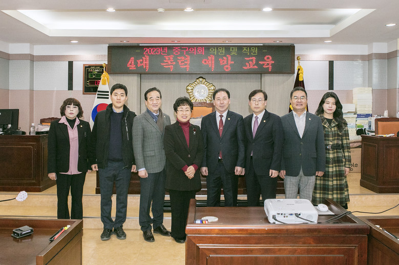 중구의회는 직장내 4대폭력을 예방하고 올바른 성문화를 정착시켜 건전한 직장문화를 조성하기 위해 매년 전문강사를 통한 폭력예방교육을 실시하고 있다.