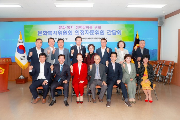 [대구=세계타임즈 한성국 기자] 대구시의회 문화복지위원회(위원장 이영애)는 2019년도 행정사무감사 및 2020년도 예산안 심사에 앞서 10월 18일(금) 11시 시의회에서 문화복지위원회 의정자문위원과 소속 의원 등 14명이 참석한 가운데 문화.복지 정책강화를 위한 간담회를 개최했다.