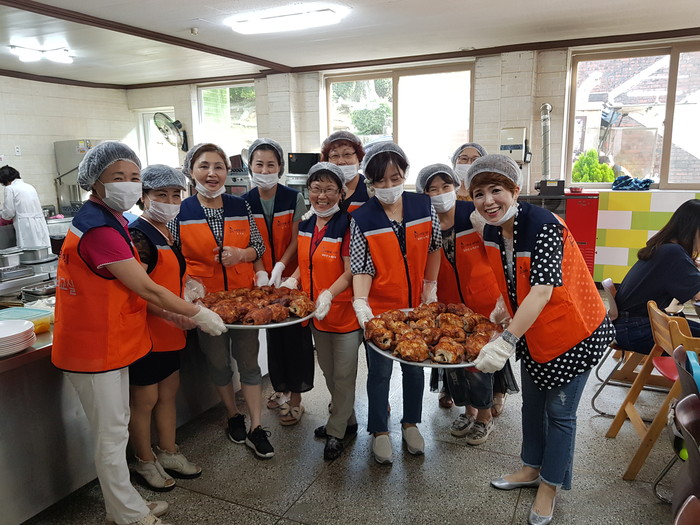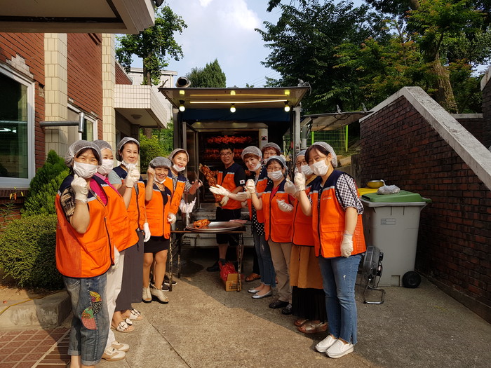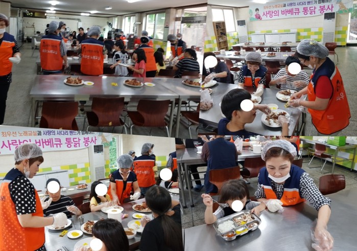 신상일 통닭 봉사 단장은 “방과 후 아이들이 바비큐 통닭을 맛있게 먹는 모습에서 행복과 보람을 느낀다.“고 말했다.
