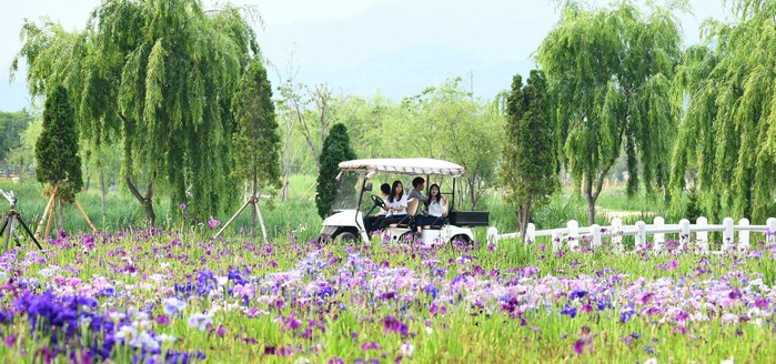 ▲ 거창 창포원 = 국가 하천인 황강의 배어난 수변경관과 생태자원을 활용한 국내 최대의 친환경수변생태공원이다. 5월에는 세계 4대 아름다운 꽃인 ‘꽃창포’와 함께 산뜻한 봄바람을 맞으며 힐링할 수 있다.