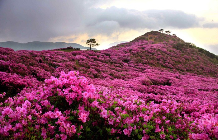 ▲ 합천 황매산 = 진분홍빛 봄 철쭉이 탄성을 자아낸다. 요즘 청년층의 셀프 웨딩 핫 플레이스로 손꼽힌다. 캠핑장에서 보는 밤하늘 은하수는 다른 어느 곳에서 쉽게 볼 수 없는 풍경으로 감탄을 자아낸다.