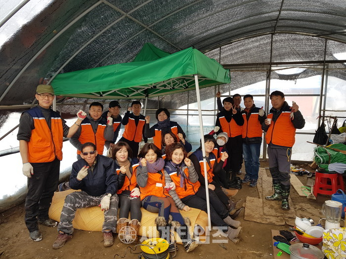 천정훈(금강솔루션 대표) 회원은 “추운겨울에 비닐하우스에서 모기장안에서 생활하시는 독거어르신께 오늘 따뜻한 보금자리를 마련해드려서 행복과 보람을 느낀다.“고 말했다,