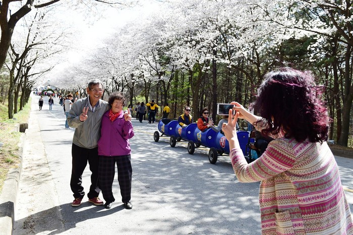 살랑이듯 불어오는 포근한 봄바람을 따라 벚꽃 꽃비가 한들한들 날리면서 상춘객들은 낭만과 기쁨에 취했다.
