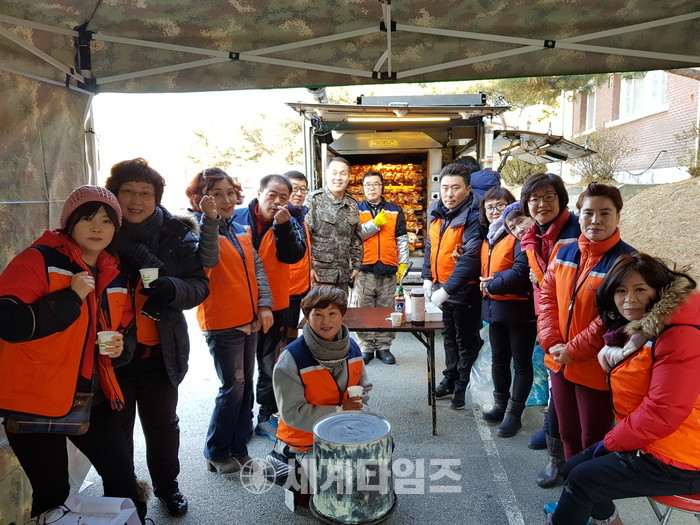 이날 봉사에는 신상일 바베큐 통닭봉사 회장, 유희자 나눔봉사단장을 비롯해서 회원 20명이 추운날씨에도 군부대에서 150마리 통닭을 만들어서 점심시간에 군 장병들에게 전달을 하였다.