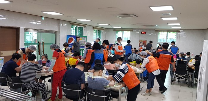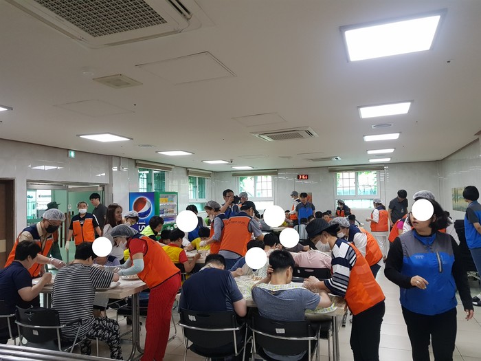 이날 봉사에는 신상일 단장, 유희자 단장을 비롯한 회원 20명이 2곳의 장애인시설에서 동시에 통닭 봉사에 참석을 하였다.