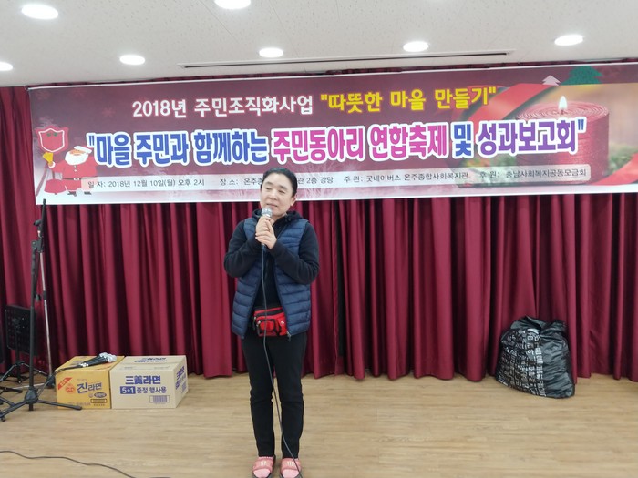 한편, 온주종합사회복지관은 주민들이 스스로 지역사회에 관심을 가지고, 마을의 좋은 변화를 만들어내기 위하여 함께 고민하고 활동할 수 있도록 충남사회복지공동모금회(회장 이관형)의 지원을 받아 3년째 주민조직화(마을만들기)사업을 진행 중에 있다.