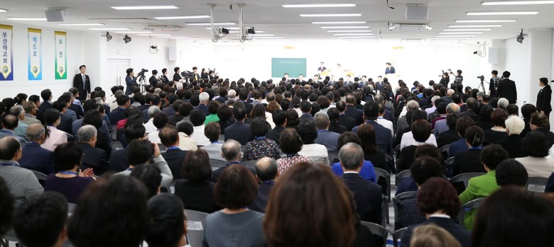 ▲‘신천지 인천 전도 대성회’가 6일 열린 가운데 목회자들이 이만희 총회장의 강연을 듣고 있다 [사진 제공 = 신천지예수교회]