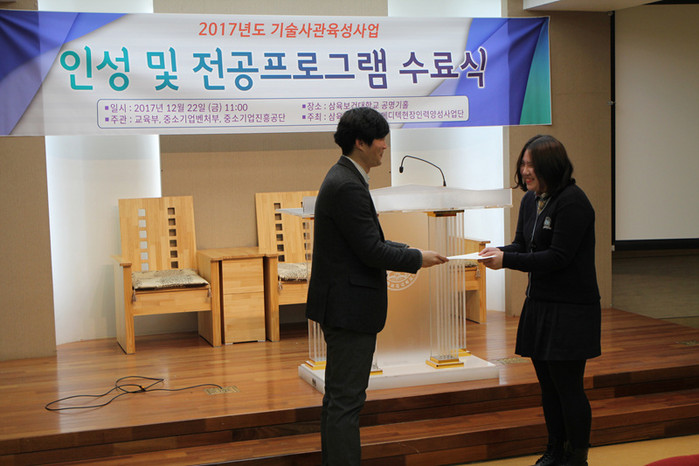 기술사관육성사업을 담당하는 전희영 선생은 “이번 수료식에서 나눠주는 수료증과 더불어 앞으로 노력하여 받게되는 자격증은 학생들에게 중요한 경력이 될 것이다.”라며 “지금부터 본인 경력을 관리하고 포트폴리오 작성을 시작하면 2년 뒤 취업할 때 큰 도움이 될 것이다.”고 이번 수료식의 의미를 더했다.