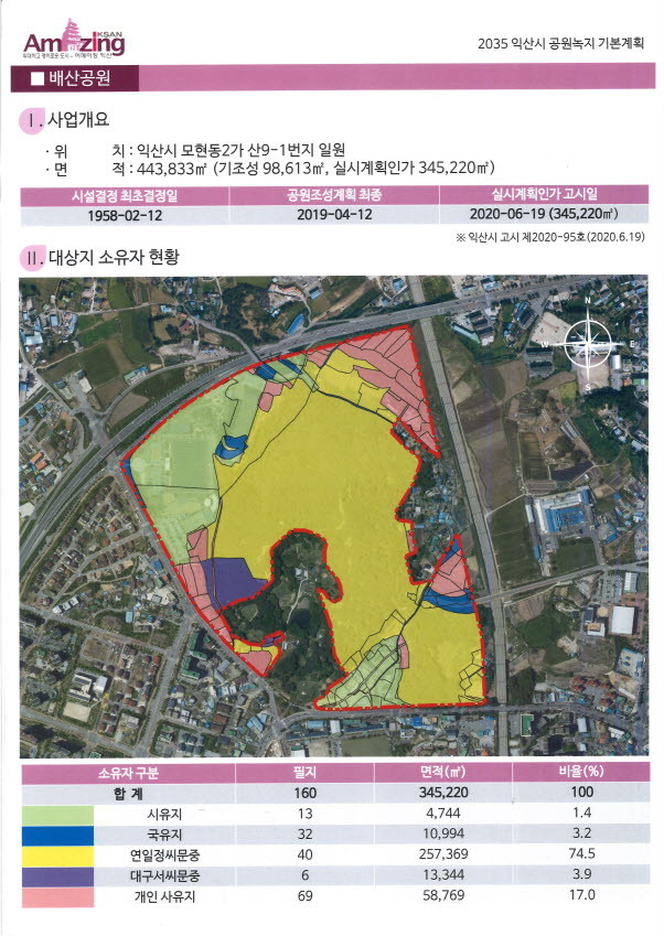 박 의원은 “익산시는 지난 3년간 배산공원에 부지사용료 및 편의시설 조성, 시설개선을 위해 30억 정도의 사업비를 투입해 배산공원의 가치 또한 더욱 상승됐다”고 말했다. 실제 배산공원 매입비는 2017년 281억원, 2019년에는 400억원 정도이며 2023년 현재 500억원 정도로 추정된다.