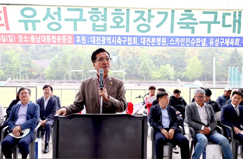 [대전 세계타임즈=이채봉 기자] 대전시의회 조원휘 의장은 20일 충남대학교 종합운동장에서 개최된 제7회 유성구협회장기 축구대회에 참석해 사고 없는 안전한 대회 진행을 기원하며 건강한 생활체육 문화 조성을 위한 지원을 약속했다.