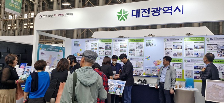박람회 기간 대전시는 도시재생 홍보관을 운영했다. 홍보관에서는▲마중물 사업 완료·추진 현황 ▲경제기반형 사업 ▲도시재생사업 지도를 전시하고 청년예술인과 마을조합이 제작한 티셔츠, 키링, 드립백, 잼 등 다양한 로컬 굿즈를 선보였다. 시민과 방문객들은 대전 도시재생의 창의성과 공동체 활동을 직접 체험하며 높은 관심을 보였다.