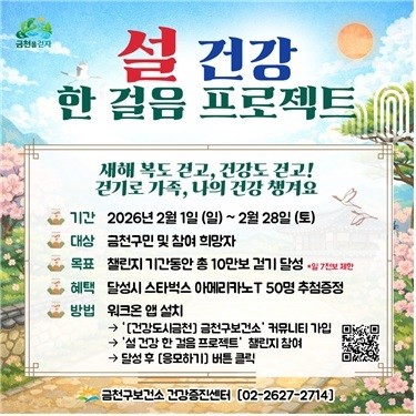 유성훈 금천구청장은 “걷기를 통해 생활 리듬을 회복하고, 일상 속 건강관리의 중요성을 체감하는 계기가 되길 바란다”라며 “앞으로도 지역주민들이 부담 없이 참여할 수 있는 생활밀착형 건강사업을 통해 건강도시 금천을 지속적으로 만들어 나가겠다”라고 말했다.