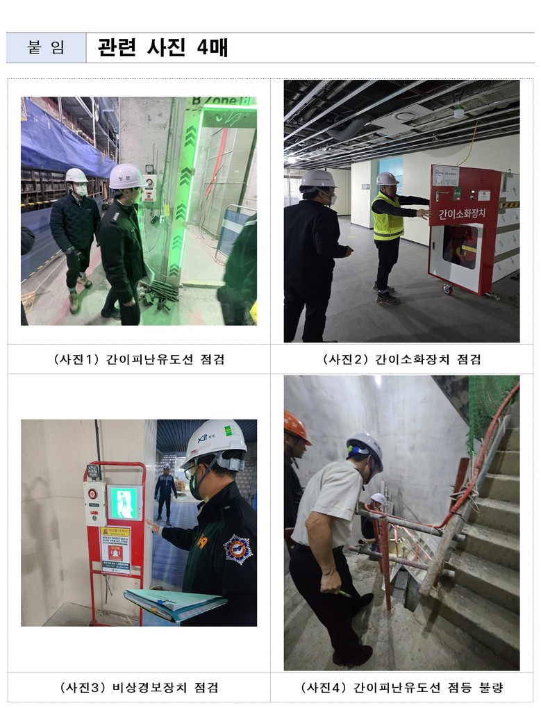 조사에서는 ▴임시소방시설 설치 및 유지관리 실태 ▴소방기술자·감리원 등 법정 인력 배치 여부 ▴용접·용단 등 화기 취급 작업의 감독 관리 실태 등을 중점적으로 확인했다.