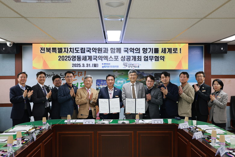 이번 협약식에는 엑스포공동위원장인 정영철 영동군수와 유영대 전북특별자치도립국악원장 등 주요 간부가 참석했다.