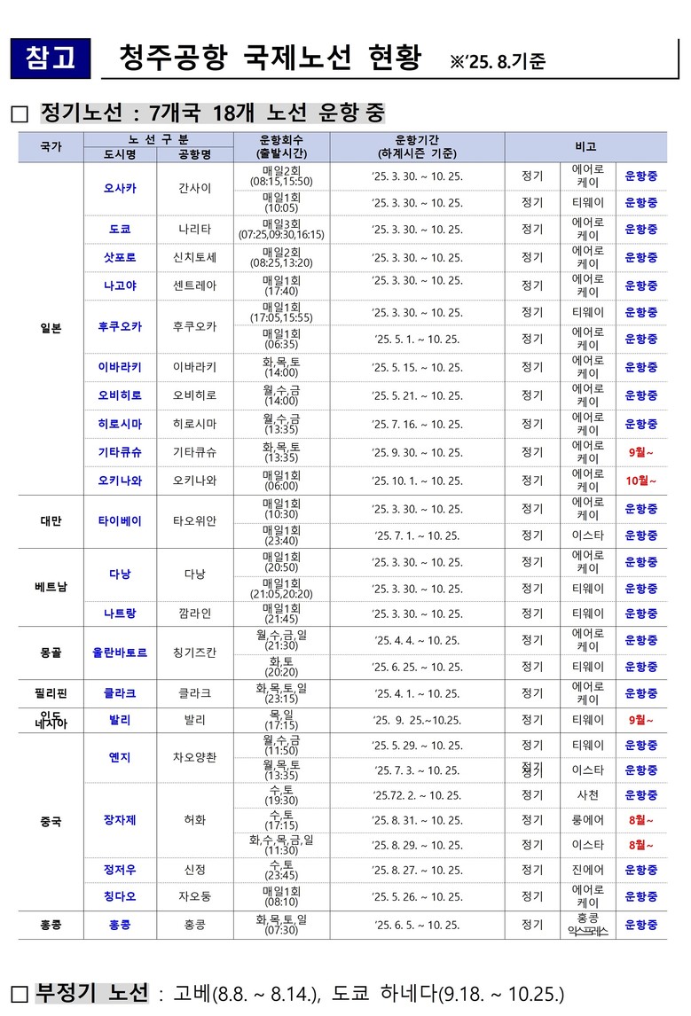 취항식에 참석한 김수민 정무부지사는 “도민 여러분께 보다 다양한 선택지를 제공해드릴 수 있도록 청주공항의 국제노선 다변화를 위해 노력할 것”이라고 밝혔다.