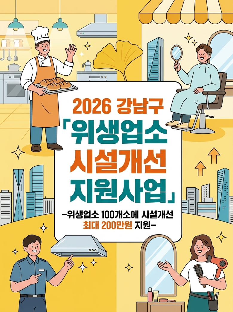 - 지난해 150개소 지원 이어 올해도 현장 수요 높은 시설개선 중심으로 추진 - [강남구 세계타임즈=이장성 기자] 꿈이 모이는 도시, 미래를 그리는 강남구(구청장 조성명)가 경기침체와 매출 감소로 어려움을 겪는 위생업소의 영업환경 개선을 위해 ‘위생업소 시설개선 지원사업’을 추진한다. 강남구 내 일반음식점, 휴게음식점, 제과점영업, 이·미용업소 등 100개소를 대상으로 업소당 최대 200만 원의 시설개선 비용을 지원한다.