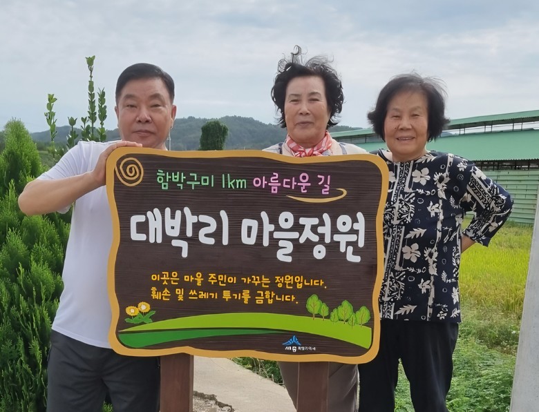 대박리는 마을 입구부터 마을회관까지 1㎞ 구간에 측백나무, 붓들레아, 겹벚꽃나무, 코스모스 등 다양한 계절꽃과 나무들이 심어 아름다운 마을정원 길을 조성했다.