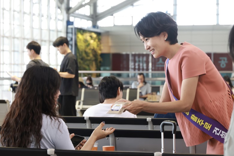 행사에 참여한 김수민 충북도 정무부지사가 “국가균형발전의 새로운 성장축인 청주국제공항 민간전용 활주로 건설과 ‘동탄~청주공항~김천 철도 건설 사업’을 조속히 추진할 것”을 촉구하고 있다.