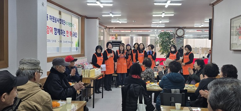 | ▲ 설을 앞두고 구로5동 자원봉사협력단이 지역 어르신들을 초청해 따뜻한 식사를 대접하고 있다. 자원봉사자들은 명절 인사를 전하며 감사의 마음을 나누고 있다. |