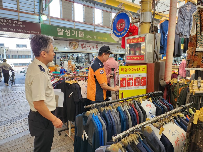 [세종 세계타임즈=이채봉 기자] 세종북부소방서(서장 김전수)가 지난 26일 추석 명절을 앞두고 세종전통시장과 전의왕의물시장에서 화재 안전을 점검했다.