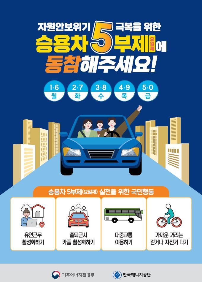 대상은 구청과 산하기관 직원 차량 및 관용차량이며, 차량번호 끝자리에 따라 평일 요일별 운행을 제한하는 방식으로 운영된다.