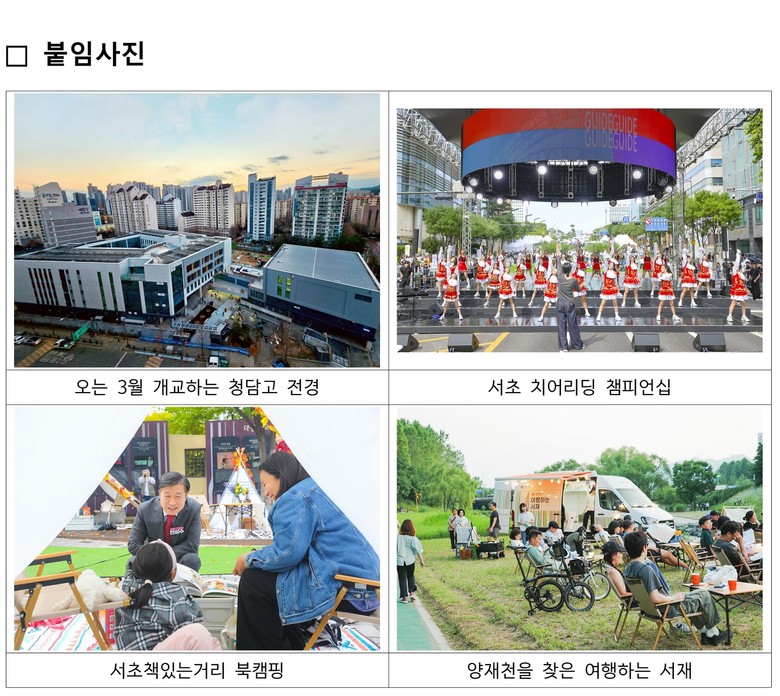 전성수 서초구청장은 “이미 우수한 교육 인프라를 갖춘 서초구가 이제는 그 혜택이 모든 구민에게 고르게 닿는 완성형 교육도시로 나아갈 때”라며 “대한민국을 선도하는 ‘교육 전성시대’를 흔들림 없이 이어가겠다”고 밝혔다.