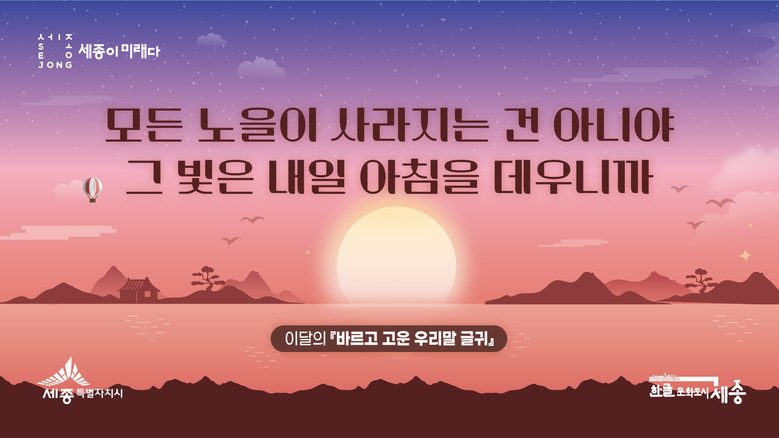 세종특별자치시(시장 최민호)가 시민 참여로 선정한 11∼12월 ‘바르고 고운 우리말 글귀’를 발표했다.