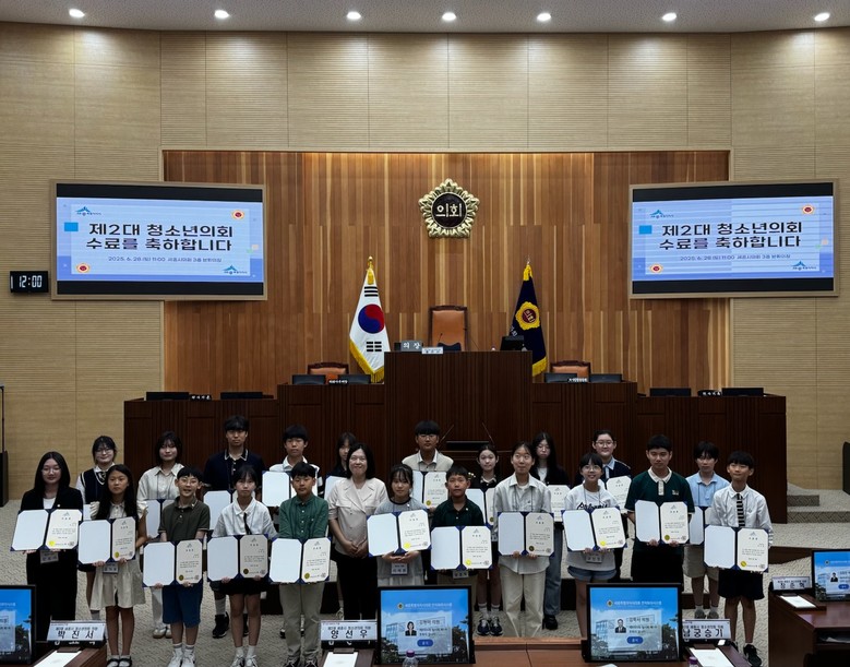 [세종 세계타임즈=이채봉 기자] 세종특별자치시(시장 최민호)가 지난 28일 세종시의회 본회의장에서 열린 청소년의회 본회의 및 수료식을 끝으로 제2대 세종시 청소년의회 활동이 마무리됐다고 밝혔다.