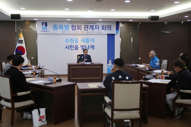 [수원시 세계타임즈=송민수 기자] 수원시 장안구는 지난 26일, 구청 상황실에서 ‘2026년 장안구청장배 생활체육대회’의 성공적 개최를 위한 종목별 협회 관계자 회의를 개최했다.