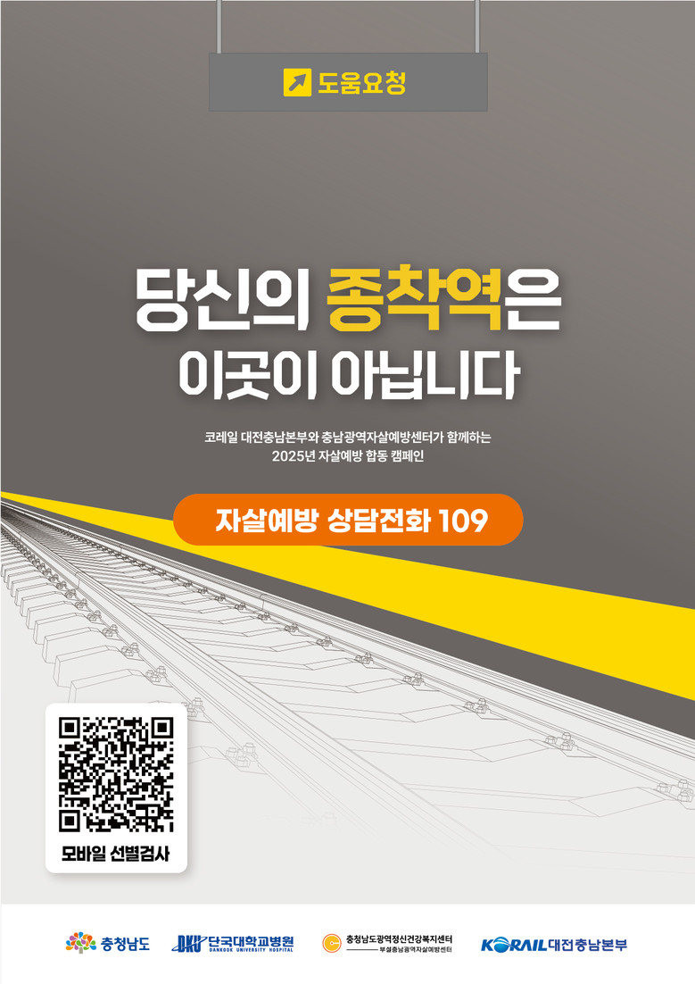 충남광역자살예방센터, 코레일 대전충남본부와 진행하는 이번 캠페인은 ‘당신의 종착역은 이곳이 아닙니다’라는 메시지를 통해 생명 존중, 자살 예방, 철도 안전에 대한 가치를 널리 알릴 계획이다.