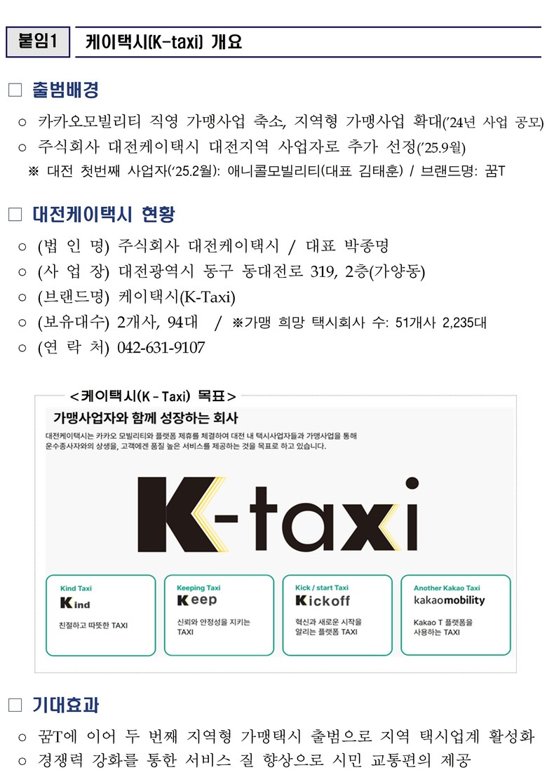 대전형 가맹택시 2호 ‘케이택시(K-Taxi)’ 출범