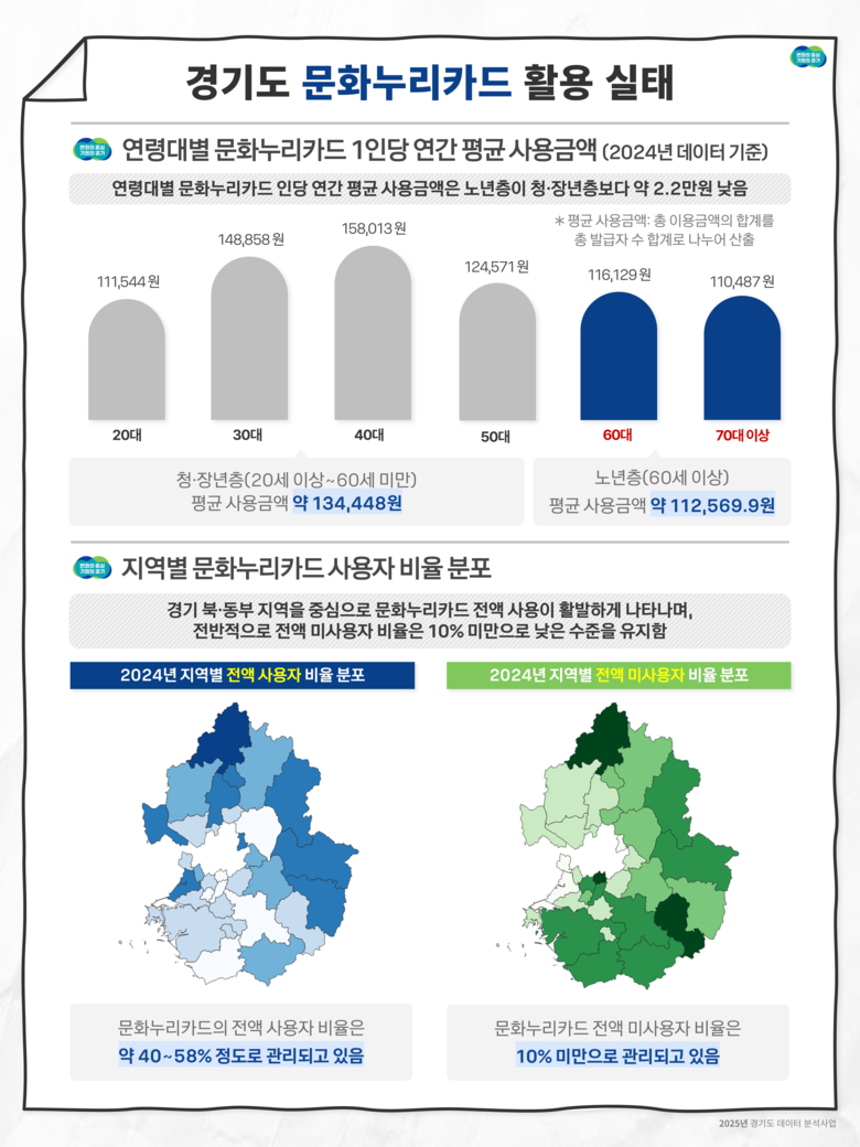 이 밖에도 문화·복지 분야에서는 ‘문화누리카드’ 이용 데이터와 ‘경기아트센터 공연’ 예매 데이터를 분석했다. 문화누리카드는 기초생활수급자 등 취약계층에게 문화예술·여행·체육 활동 기회를 제공하는 문화 바우처 사업이다.
