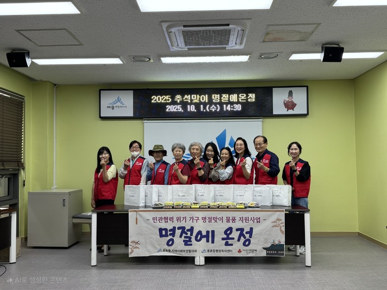 이현정 종촌동장은 “풍성한 한가위를 맞아 어려운 이웃들이 소외되지 않도록 마음을 모아 준비했다”며 “앞으로도 복지 사각지대를 해소하고 모두가 함께하는 복지를 실현해 나가겠다”고 말했다.