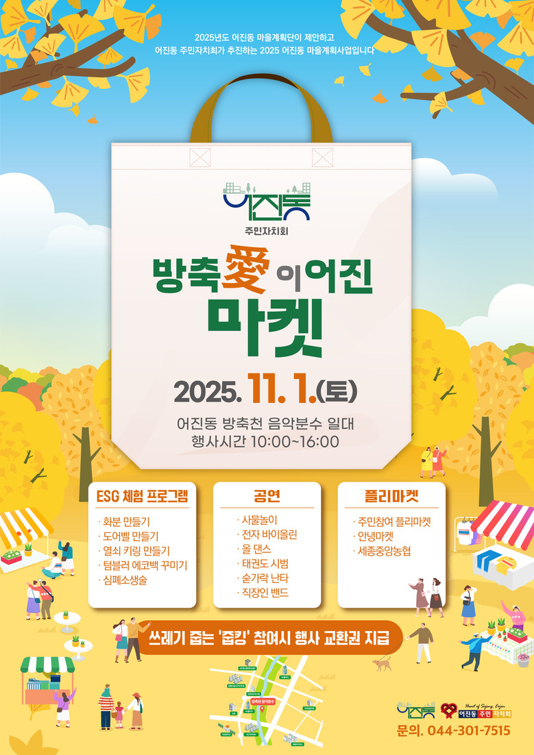 정성헌 주민자치회장은 “이어진마켓은 도시와 농촌, 현재와 미래를 잇기 위한 상생 프로젝트로 어진동의 대표 마을계획사업으로 자리잡아가고 있다”며 “해를 거듭할수록 더 많은 주민이 이어지고, 사업의 의미가 깊어지기를 희망한다”고 말했다.