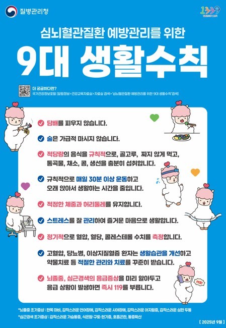 주요 활동으로는 9월 중 충북 도내 주요 지역 축제(청주청원생명축제, 2025영동세계국악엑스포, 보은평생학습어울림축제 등)와 연계한 홍보 부스를 운영하여 심뇌혈관질환 예방관리 9대 수칙을 안내하고 ‘자기혈관 숫자 알기’의 중요성을 강조한다.
