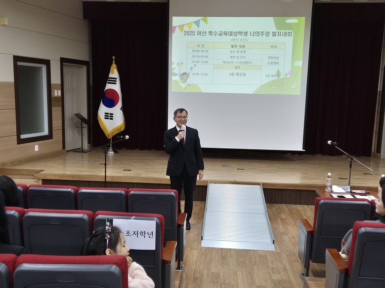 [아산시 세계타임즈=이현진 기자] 아산교육지원청(교육장 신세균)은 2025년 11월 6일, 아산교육지원청 대강당에서 특수교육대상학생들이 자신의 생각을 키우고 표현력을 기를 수 있는 기회의 장을 마련하기 위해 '2025 아산 특수교육대상학생 나의 주장 발표대회'를(이하 ‘대회) 개최했다.