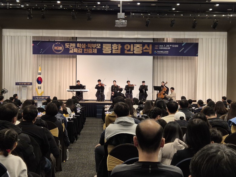 [경북 세계타임즈=한윤석 기자] 경북교육청(교육감 임종식)은 24일 경주시에 있는 더케이호텔경주 거문고홀에서 ‘제3회 도전! 학생.학부모 교육감 인증제 통합 인증식’을 열고, 인증 학생과 학부모, 가족 등 350여 명이 참석해 도전과 성취의 의미를 함께 나눴다고 밝혔다.