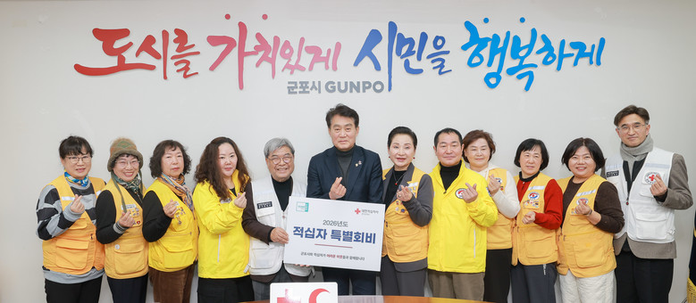 [군포시 세계타임즈=송민수 기자] 군포시(시장 하은호)는 16일 2026년도 적십자 특별회비 100만원을 대한적십자사 경기도지사에 전달하며 새해 따뜻한 나눔의 시작을 알렸다.