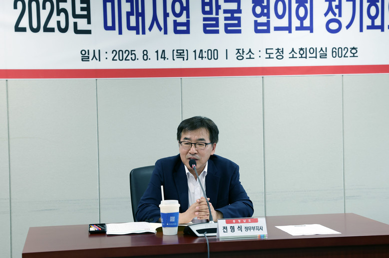 전형식 정무부지사와 도 관계 공무원, 미래사업 발굴 협의회 위원 등 20여 명이 참석한 가운데, 이번 회의는 후보 과제 평가·선정 절차 설명 및 질의응답, 심층 토의 등의 순으로 실시했다.