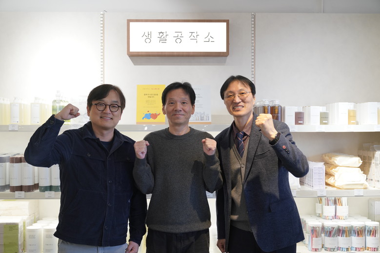 | ▲ 왼쪽부터 김상혁 생활공작소 대표이사, 탁정삼 경기도주식회사 경영본부장, 안덕희 하나더하기 대표 |