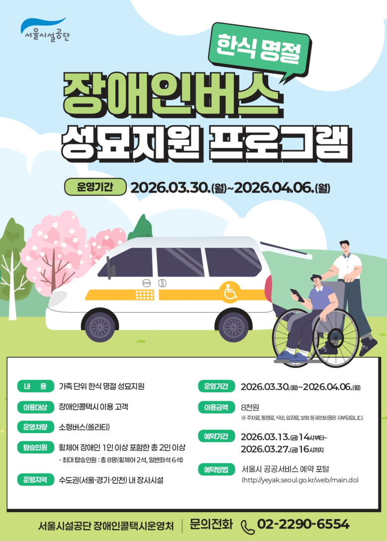 이번 서비스는 이동에 어려움을 겪는 장애인 가족들이 보다 안전하고 편안하게 성묘를 다녀올 수 있도록 마련된 것으로, 3월 30일(월)부터 4월 6일(월)까지 운영된다.