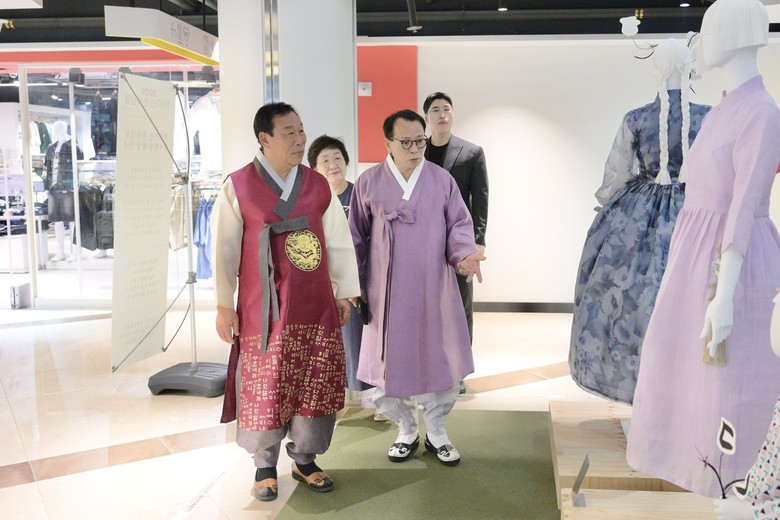 한복상점에서는 한글 디자인 한복을 포함한 사시사철 복식의 서사를 담은 전통한복 ‘사계’ 전시와 한복 대여 체험, 사은품 부스 등이 연계된 상점을 만나볼 수 있다.