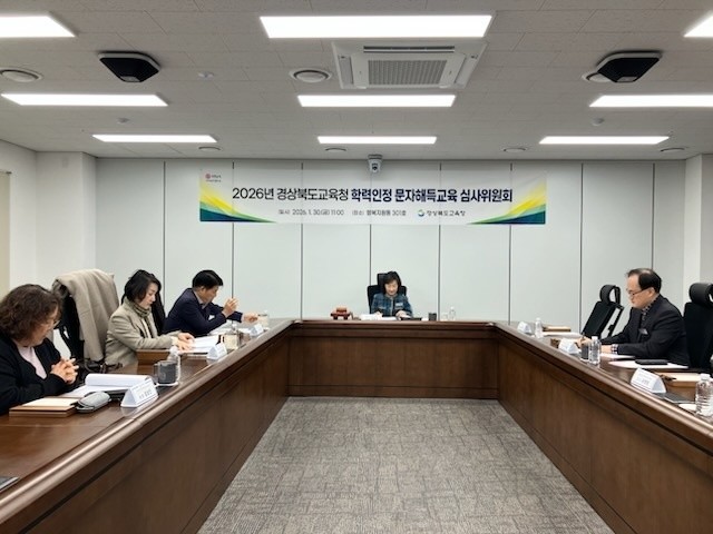 [경북 세계타임즈=한윤석 기자] 경북교육청(교육감 임종식)은 30일 본청 행복지원동 301호 대회의실에서 문자해득심사위원회를 개최하고, ‘2026년 학력인정 문해교육 프로그램’ 운영기관으로 18개 기관을 지정했다. 아울러 2025학년도 교육과정을 이수한 만학도 171명(초등 105명, 중등 66명)에 대해 학력을 인정했다.