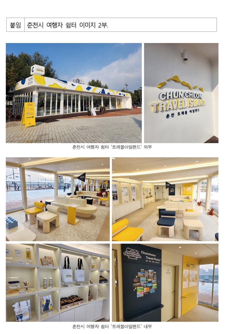 디자인진흥원은 올해 초 춘천시 위탁사업을 통해 춘천역 인근에 운영이 중단된 명품관 건물을 여행자 쉼터 ‘춘천트래블아일랜드’로 새롭게 조성했다. 춘천트래블아일랜드 조성 이후, 기존에 다소 삭막했던 춘천역 광장은 다양한 관광객과 시민들의 발길이 이어지며 활기를 띠고 있다.