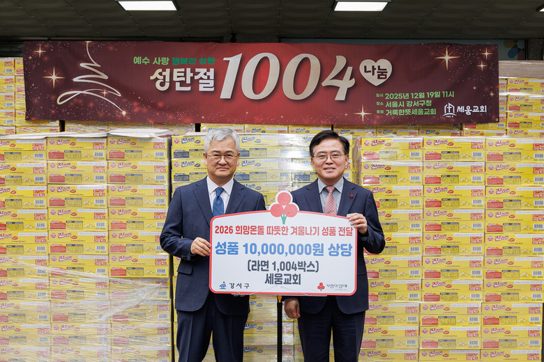 같은 날 세움교회(담임목사 이학성)는 라면 1,004박스를 기탁했다. 이학성 담임목사는 지난 2012년 첫 기부를 시작으로, 14년째 꾸준한 나눔을 실천 중이다. 올해 세움교회로 취임한 후에도 기부활동을 이어가 지역사회에 큰 울림을 주고 있다.